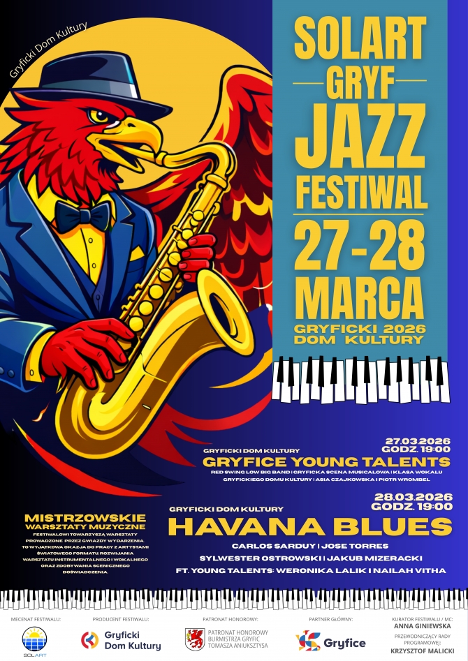 Już 27–28 marca 2026 roku Gryfice staną się jazzowym sercem Pomorze Zachodnie! W murach Gryfickiego Domu Kultury odbędzie się pierwsza edycja SOLART Gryf Jazz Festiwal – wydarzenia, które łączy światowe gwiazdy, czołowych polskich artystów i młode talenty nowego pokolenia.